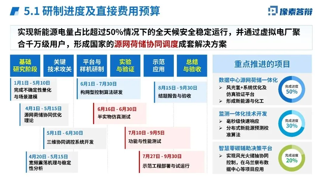 分五个阶段推进(基础研究→关键技术→平台研制→示范应用→验收),总经费4400万元(设备费28.4%、材料费20%、测试费14.1%),确保90%以上直接用于技术攻关。