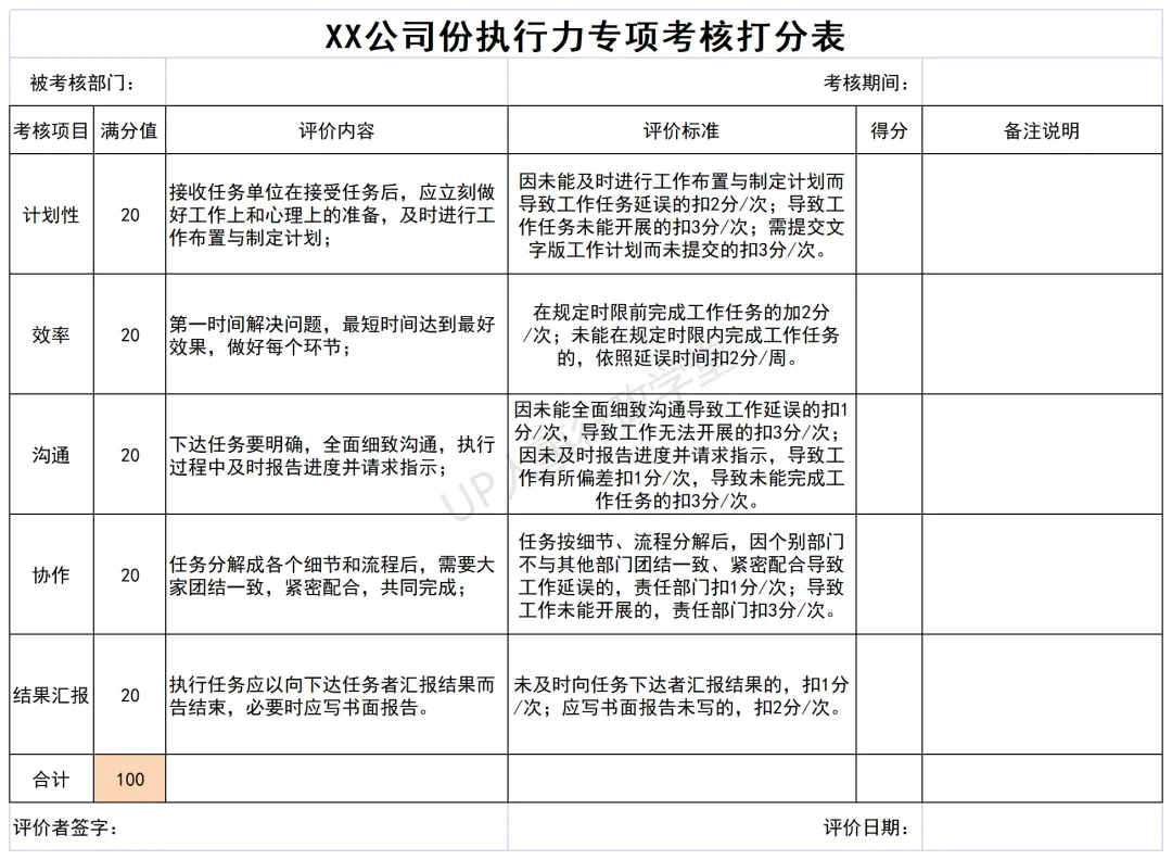 ▼ 执行力提升考核表格.xls