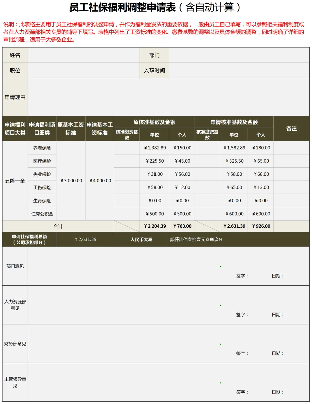 ▼ 员工社保福利调整申请表.xls