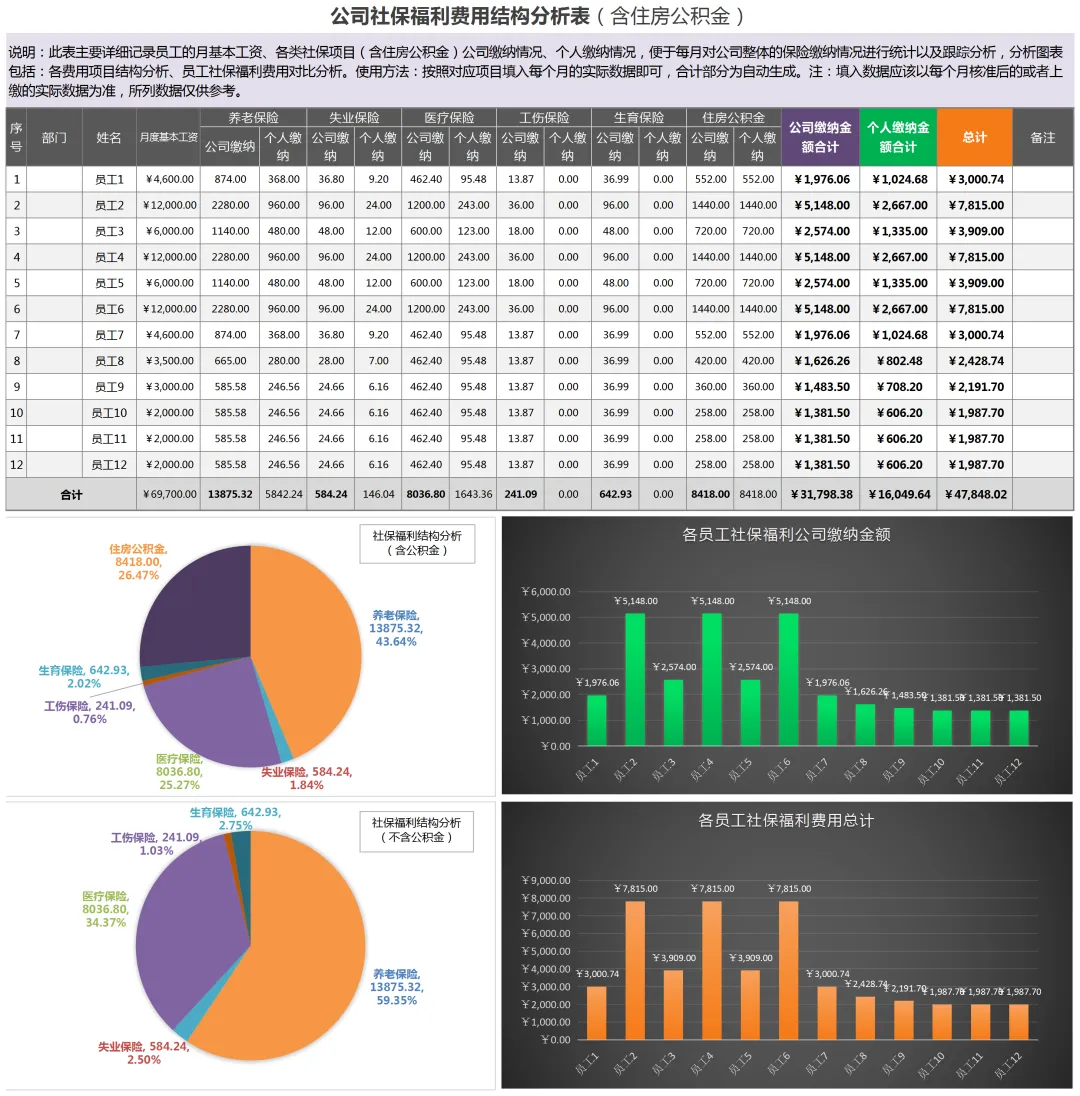 ▼ 公司社保福利费用结构分析表.xls