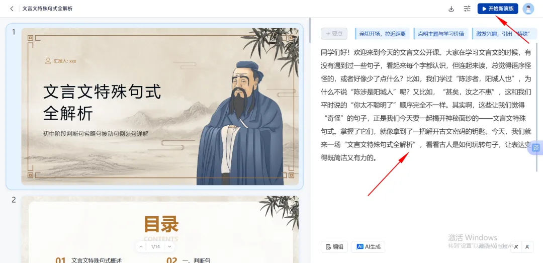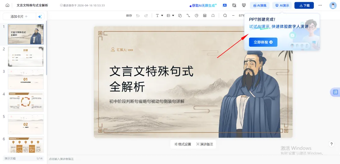 直接生成PPT大纲,这里可以根据大家需要进行人工修改。